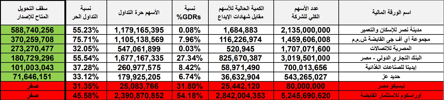 وتستعرض البورصة الرصيد الحالي لشهادات الإيداع الأجنبية وما يقابلها من عدد الأسهم: