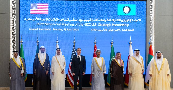 وبحث الاجتماع سبل تعزيز وتطوير التعاون بين دول الخليج والولايات المتحدة الأمريكية بمختلف المجالات، ومناقشة آخر تطورات الأوضاع الإقليمية والدولية، وفي مقدمتها المستجدات في قطاع غزة ومدينة رفح، وأهمية الوقف الفوري لإطلاق النار، وضمان تأمين الممرات الإغاثية لإيصال المساعدات الإنسانية.